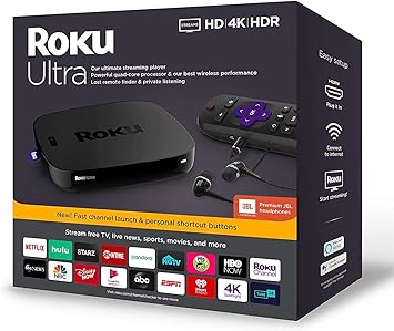 Amazon Com Newest Roku Ultra Streaming Media Player 4k Hd Hdr Bundle Premium Jbl Headphones Enhanced Voice Remote With Tv Controls And Shortcuts Hdmi Ethernet And Micro Sd Ports High Speed 4k